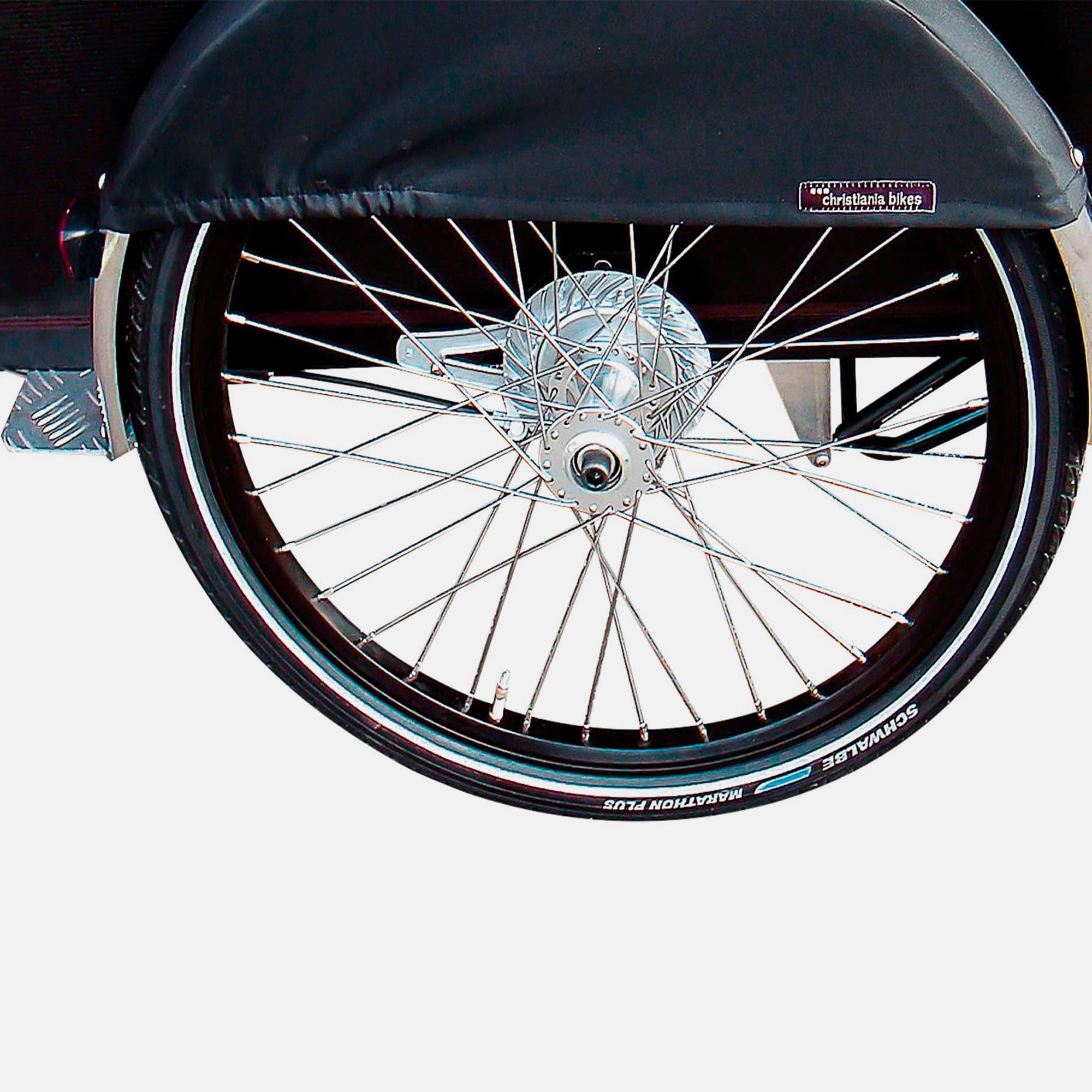 Afskærmning til vores 24″ og 26″ forhjul som forhindrer, at børnene kommer i kontakt med forhjulene. Afskærmningen er lavet af samme stærke materiale som vores kalecher og monteres på de rustfrie skærme.