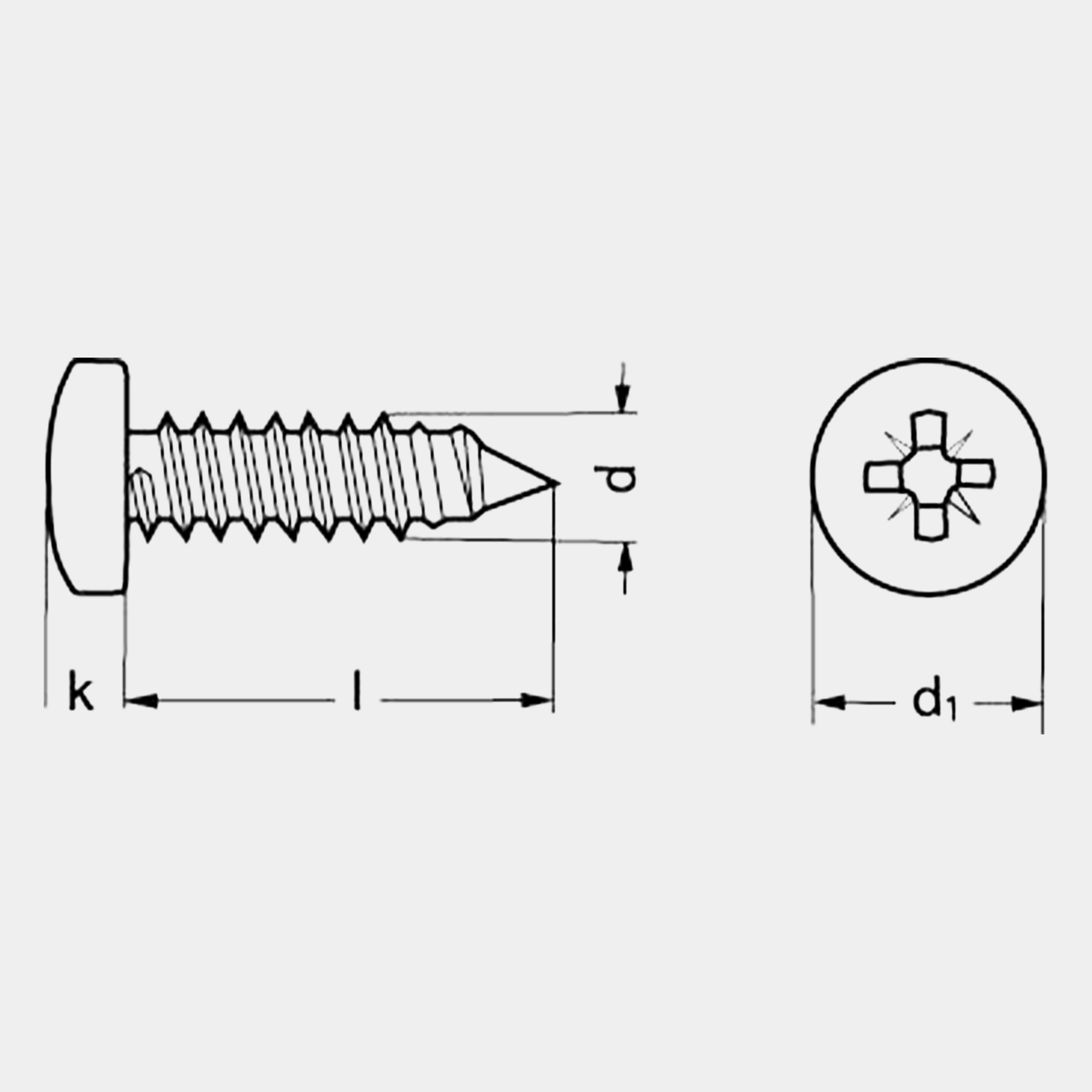 Screw - Stainless DIN 7981 A2 C 4,2X13 Z Cross recessed pan head tapping screws