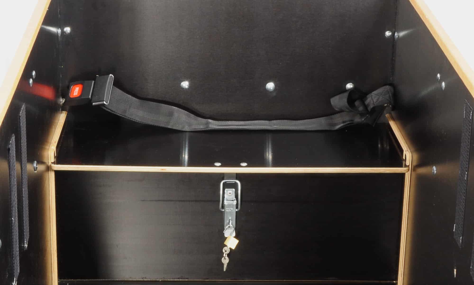 Bænken er lavet af vores 9 mm FSC-certificeret krydsfinér fra EU. Det er en fleksibel løsning at montere bænken, for dels kan den bruges som opbevaringsrum, som nemt kan aflåses, og dels er den nem at afmontere. Da bænken er lavet af meget stærkt krydsfinér, er den samtidig også meget holdbar.
