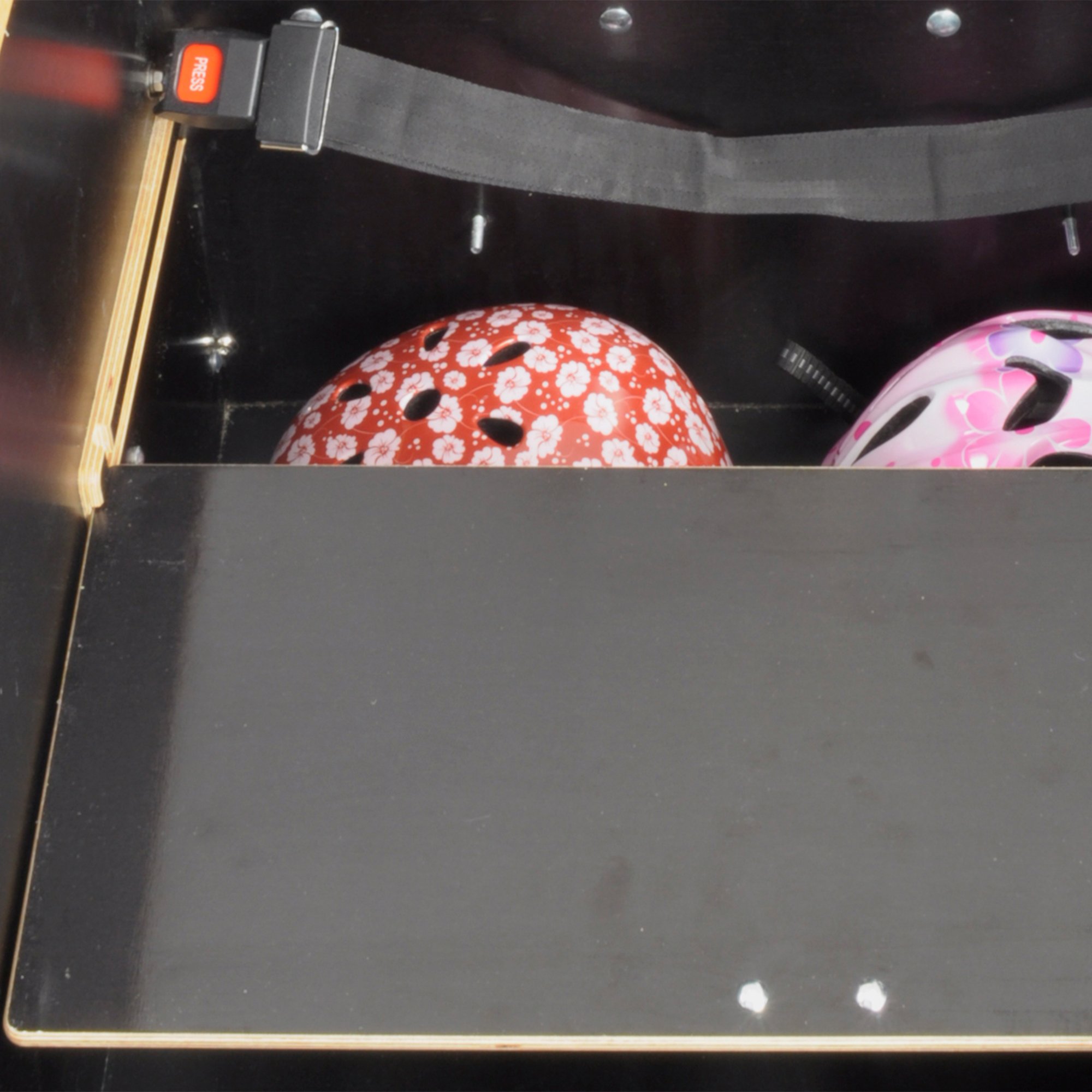Bænken er lavet af vores 9 mm FSC-certificeret krydsfinér fra EU. Det er en fleksibel løsning at montere bænken, for dels kan den bruges som opbevaringsrum, som nemt kan aflåses, og dels er den nem at afmontere. Da bænken er lavet af meget stærkt krydsfinér, er den samtidig også meget holdbar.