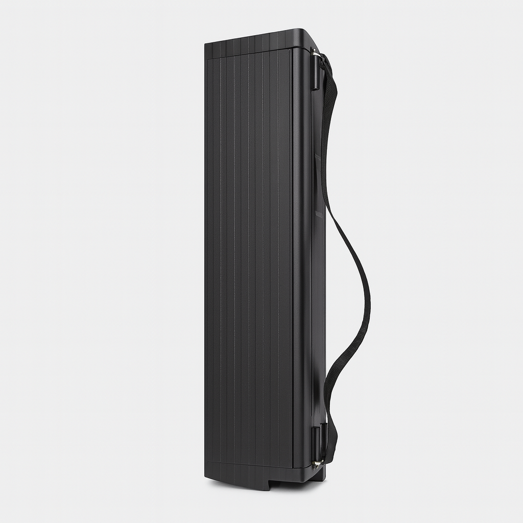 M1 batteriet, 36V/20Ah (720Wh), er konstrueret til fuld kompatibilitet med Shimano-systemer. Batteriet er udstyret med et robust stofhåndtag, der sikrer sikker og ergonomisk håndtering under montering, afmontering og transport.