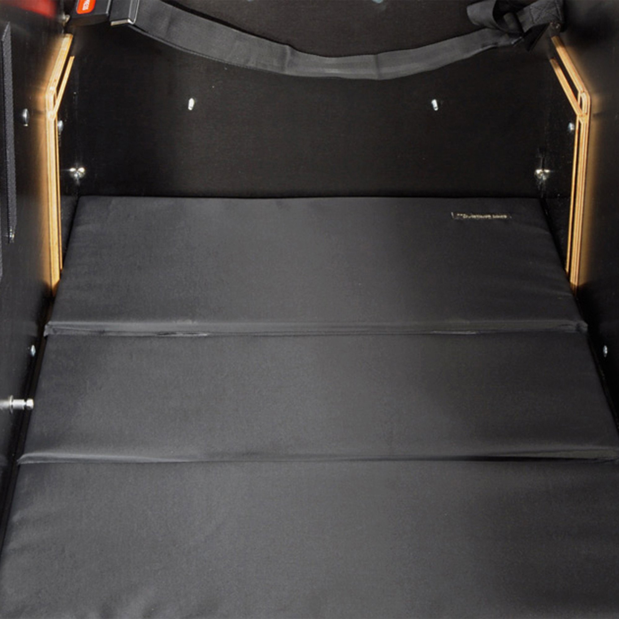 Madrassen passer til bunden af kassen, når den foldes ud. Derudover kan madrassen også bruges som pude til bænken. Madrassen kan bruges sammen med en sikkerhedssele eller med y-seler.